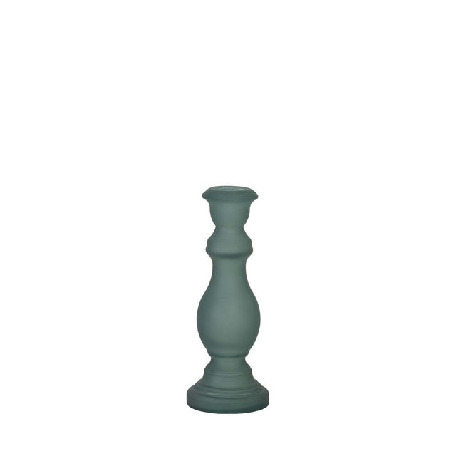 Calella Glass Candle Holder 20cm in Matte Blue Green Finish
