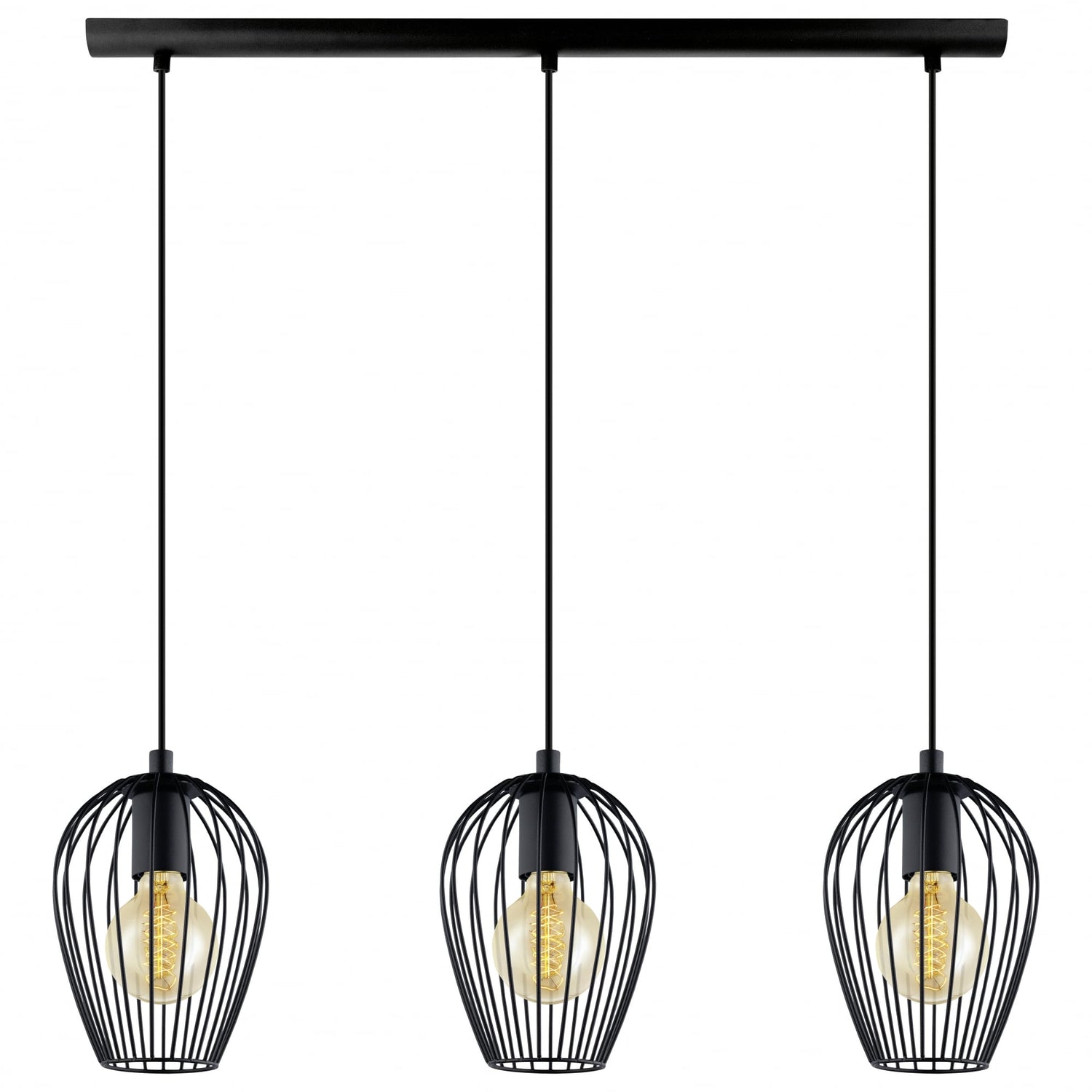 The Eglo NEWTOWN 3 light Vintage Dome Cage Ceiling Pendant is one of our many 3 light ceiling pendants. This lighting piece is made from steel with a black Finish, with a matching ceiling plate.