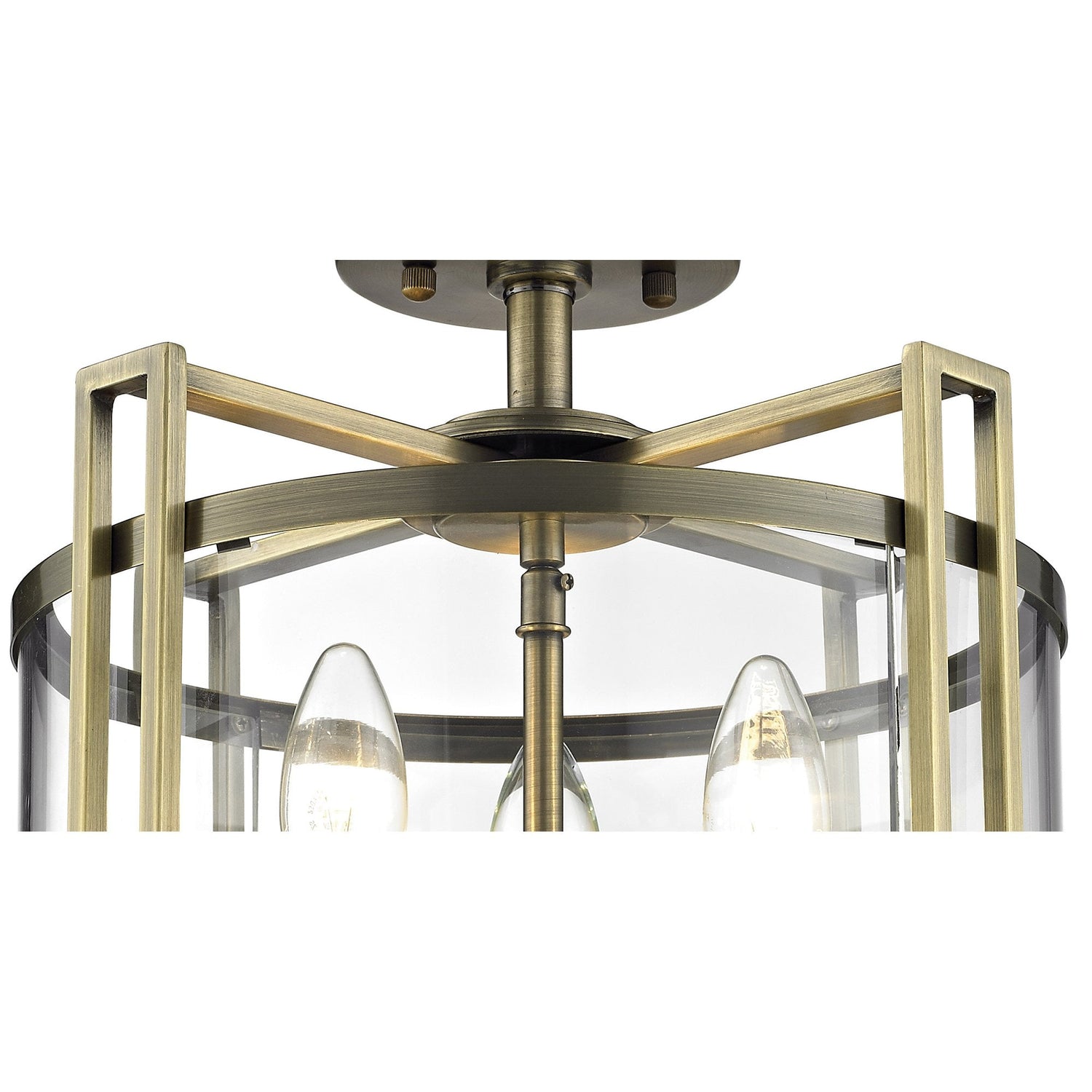 Eaton Semi Flush Mount Ceiling Light in Antique Brass and Glass