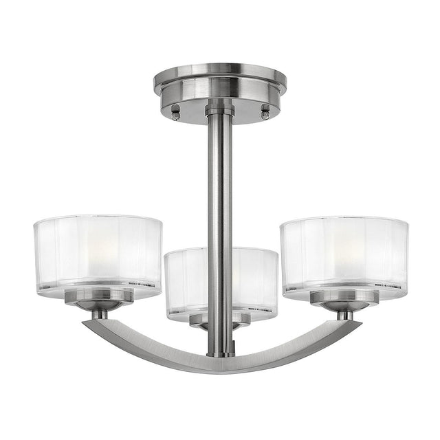 Meridian Brushed Nickel 3-Light Semi-Flush Ceiling Fixture with Faceted Glass