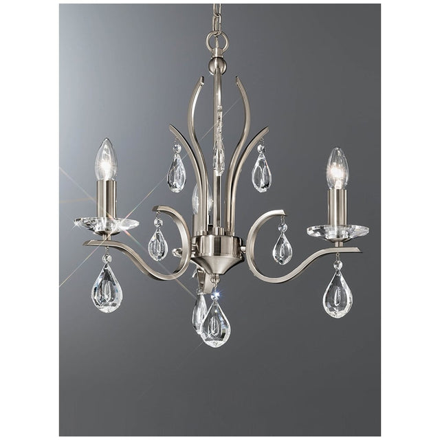 Elegant Crystal Shimmer Satin Nickel Chandelier with 3 Faceted Light Fixtures