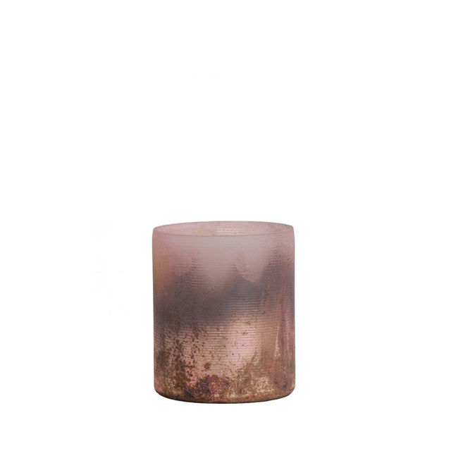 Elegant Pink and Black Glass Tealight Holder - 8x9cm