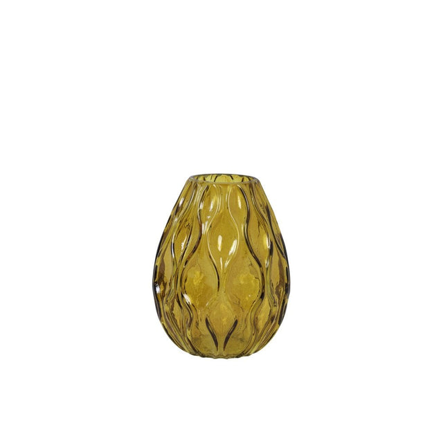 Ochre Yellow Tollin Glass Vase, 15cm Height, Round Shape