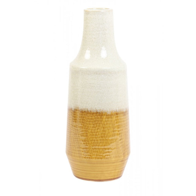 Elegant Frasca Ceramic Vase 15x39.5cm in Cream and Ochre Yellow