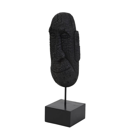 Abstract Black Mango Wood Mask Sculpture on Iron Base - 15x14x47.5cm