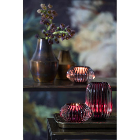 Elegant Pink Copper Glass Tealight Holder - Valerio 10x11cm