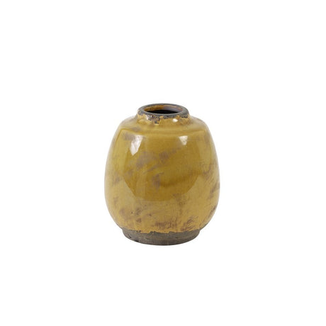 Sinabung Ocher Brown Ceramic Round Vase 13x14cm