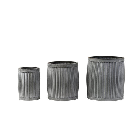 Trio of Freesia Zinc Grey Round Metal Planters - Max Diameter 44.5cm