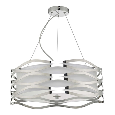 Sleek Polished Steel and Cream Linen Ceiling Pendant Light Fitting