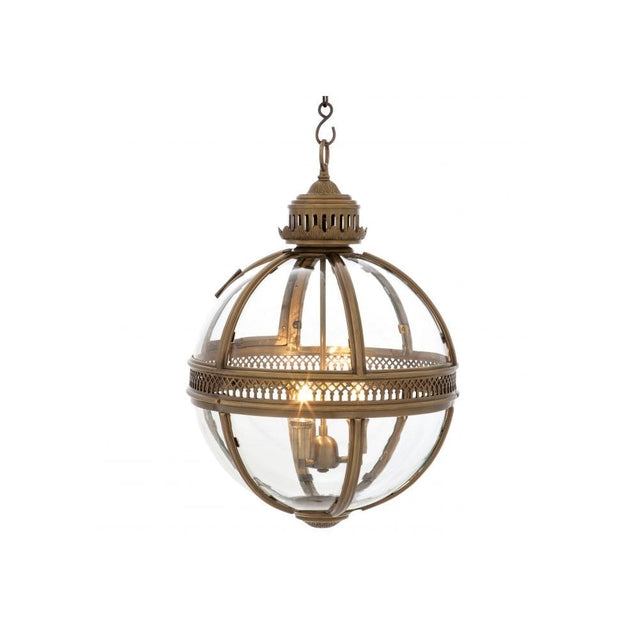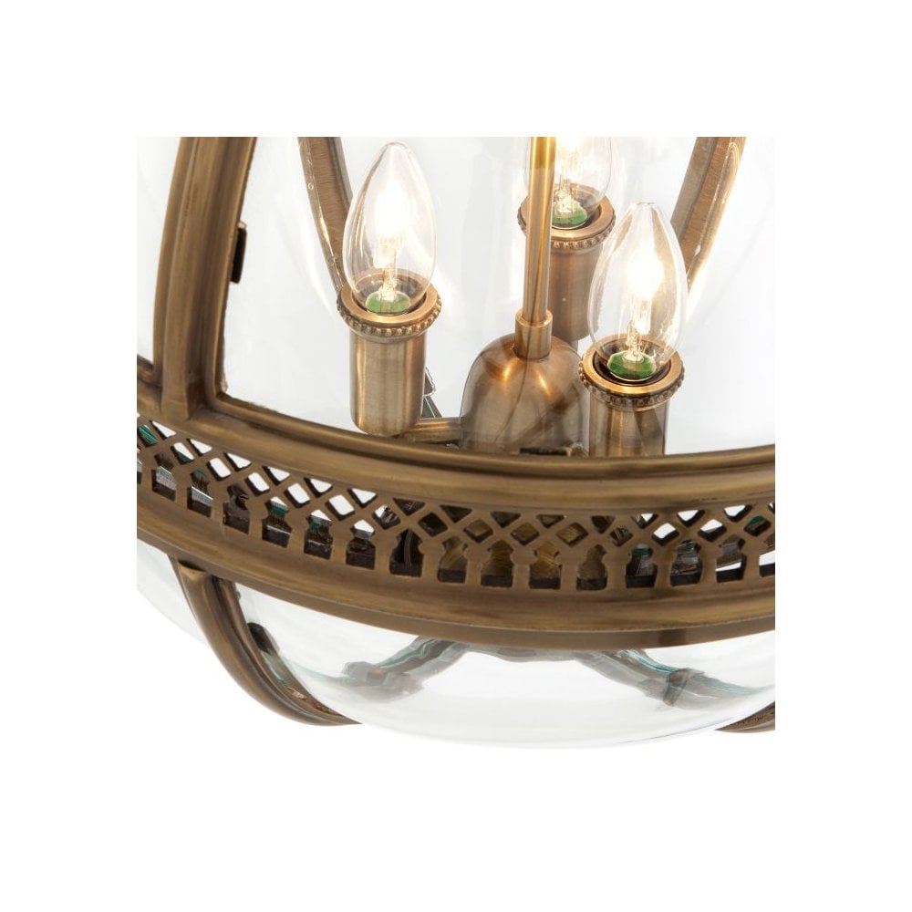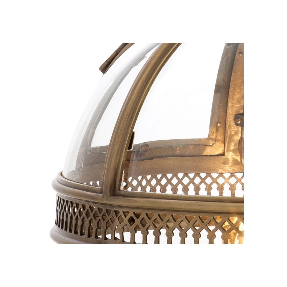 Antique Brass Lantern Pendant with Clear Glass Panels