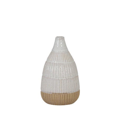 Elegant White-Brown Peleda Decorative Vase (15x25 cm)