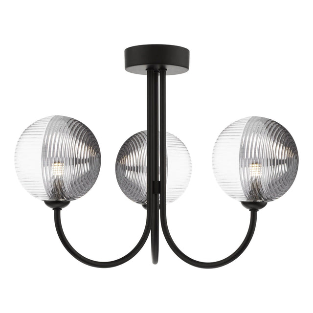 Jared 3 Light Semi Flush Matt Black With Smoked/Clear Ribbed Glass