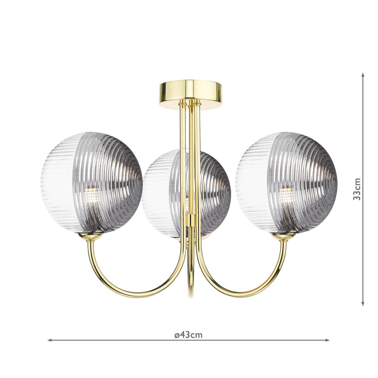 Jared 3 Light Semi Flush Polished Gold With Smoked/Clear Ribbed Glass