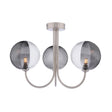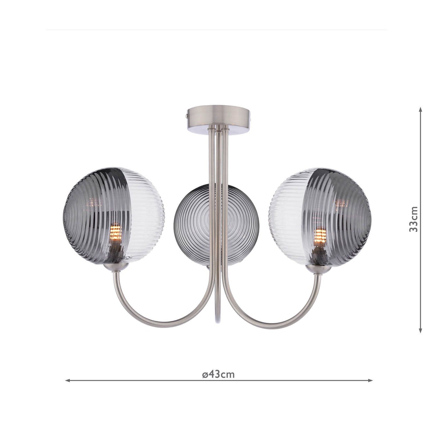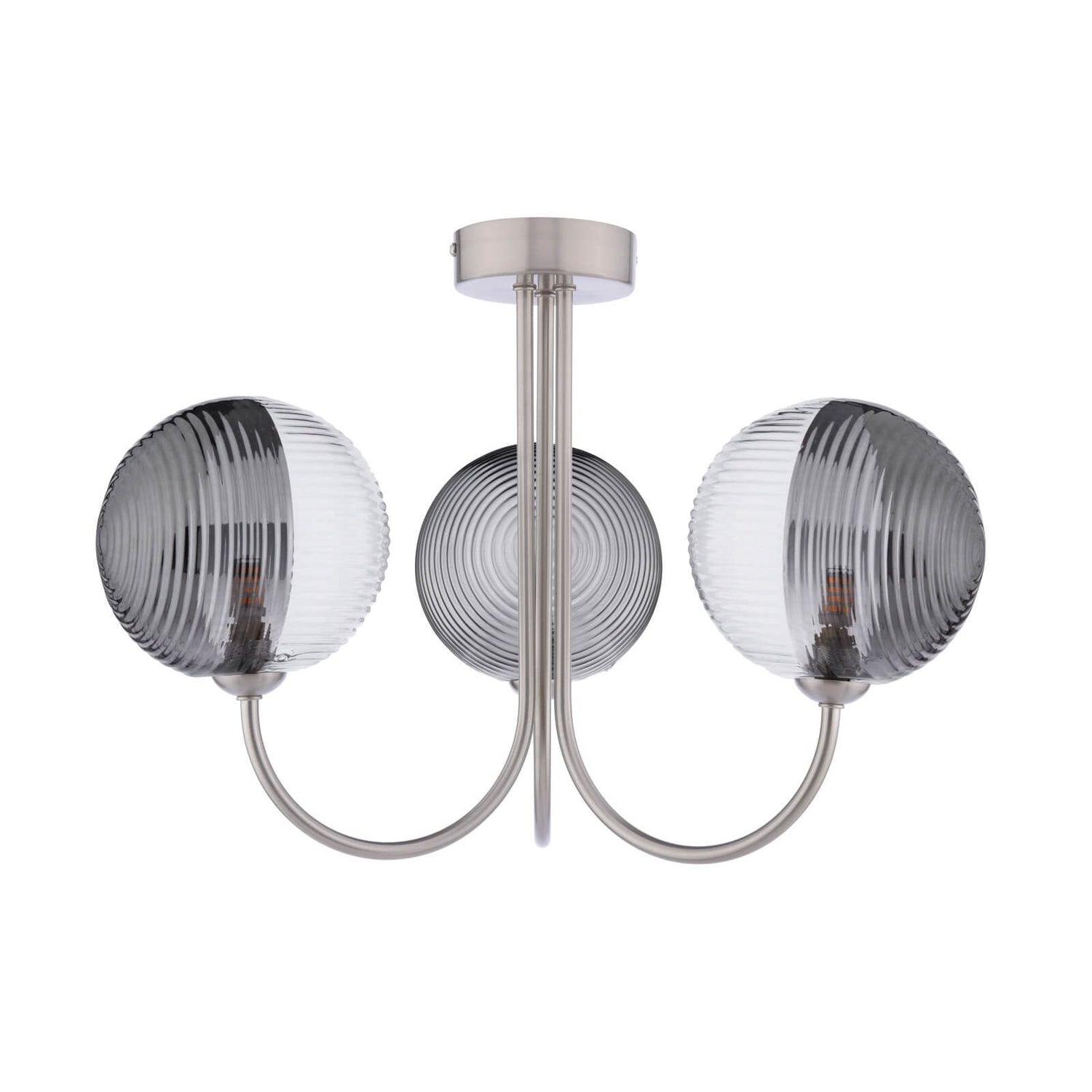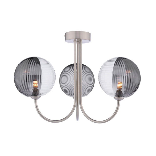 Jared 3 Light Semi-Flush Satin Nickel With Smoked/Clear Ribbed Glass
