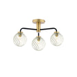 Lainey 3 Light Semi-Flush Matt Black and Antique Brass With Twisted Glass