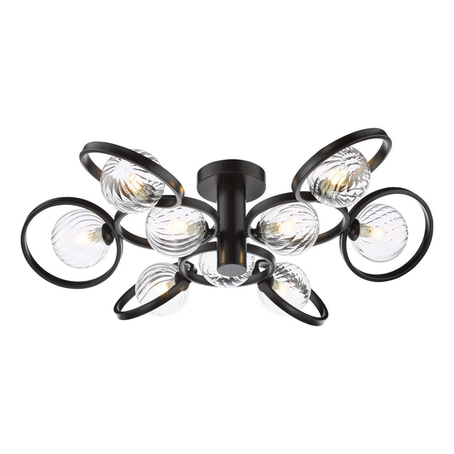 Lynette 9 Light Semi-Flush Satin Black With Twisted Glass