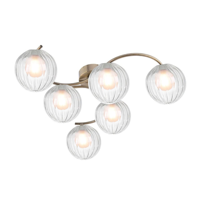 Nakita 6 Light Semi Flush Antique Brass With Clear/Opal Glass