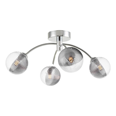 £6300 GBPUnit price /UnavailableIn stock (100 units)Izzy 4 Light Semi Flush Polished Chrome With Smoked/Clear Ribbed Glass