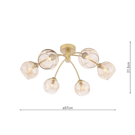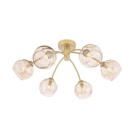 £13020 GBPUnit price /UnavailableIn stock (100 units)Izzy 6 Light Semi-Flush Matt Gold With Organic Amber Glass