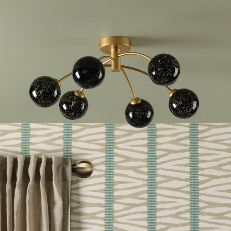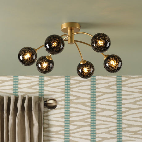 £14660 GBPUnit price /UnavailableIn stock (100 units)Izzy 6 Light Semi-Flush Matt Gold With Black Confetti Glass