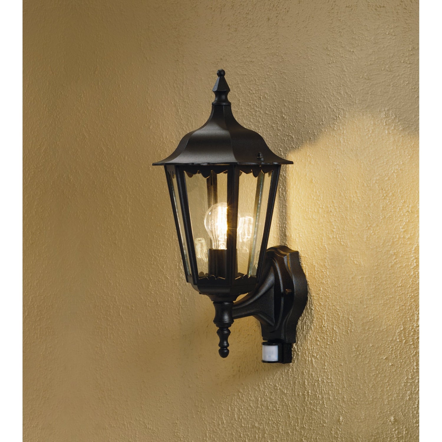 Stately Firenze Black Wall Lantern with PIR Sensor - Elegant Upturned Design