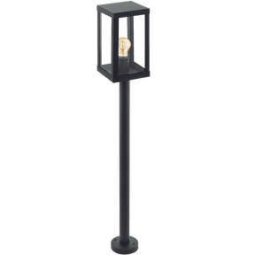 Here is the EGLO ALAMONTE Outdoor Standing Latern Light, an outdoor light with a latern connected to a black steel post.