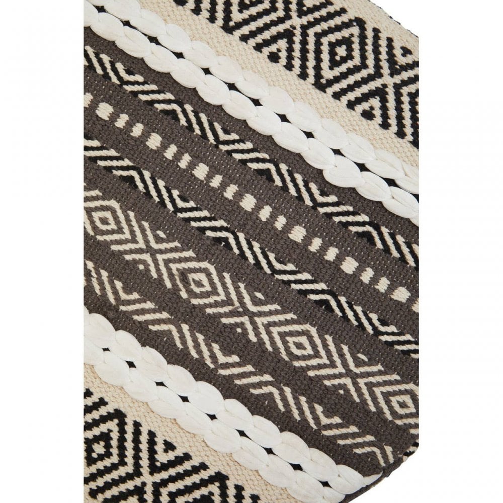 - This stool is made from durable grey and white pattern fabric with a modern and elegant design. The beautiful mango wood frame gives support and sturdiness to the stool.