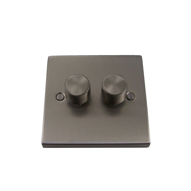 Dual Gang 400W Satin Chrome Dimmer Switch with 7mm Raised Plate