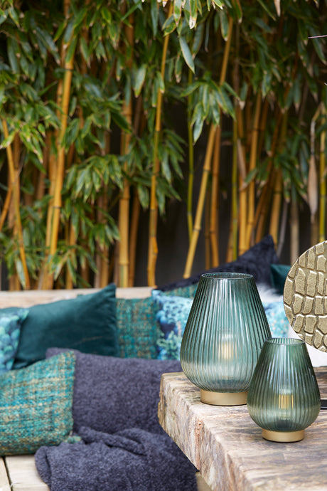 Emerald Glow LED Glass Table Lamp 16x26.5cm