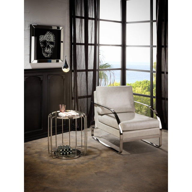 Sophisticated Hadas Steel Round Side Table with Glass Shelves is backordered and will ship as soon as it is back in stock.