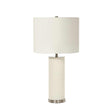 White resin table lamp with Brushed Nickel accents. Includes a White faux linen hard-backed shade. LS3017