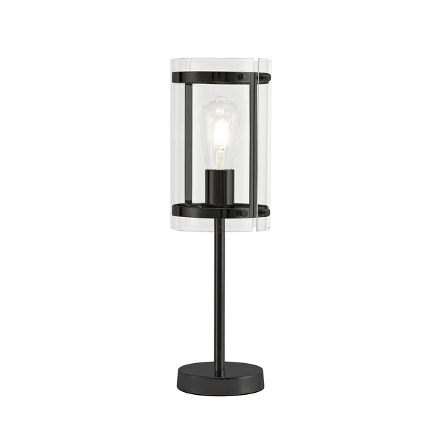 Sleek Matte Black Table Lamp with Clear Shade and Inline Switch