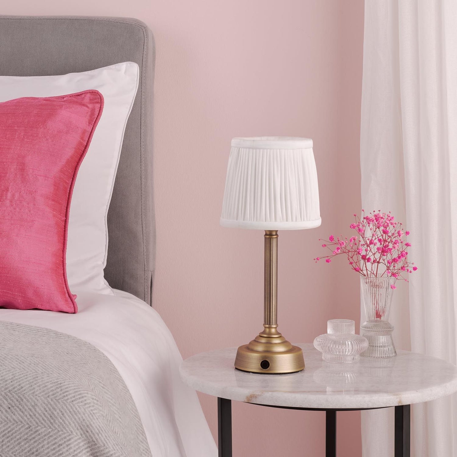 Virgil Rechargeable Table Lamp Matt Antique Brass With Shade LED