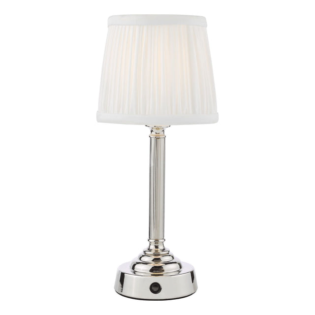 Virgil Rechargeable Table Lamp Polished Nickel With Shade LED