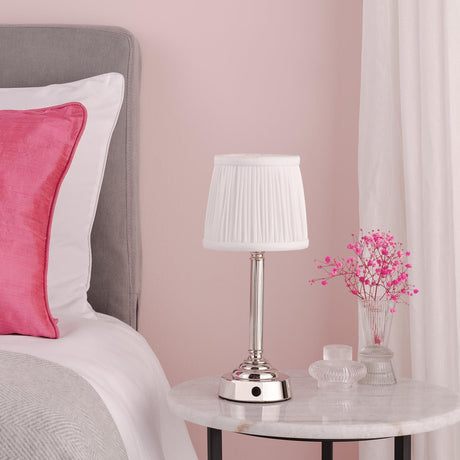 £5200 GBPUnit price /UnavailableIn stock (100 units)Virgil Rechargeable Table Lamp Polished Nickel With Shade LED