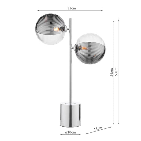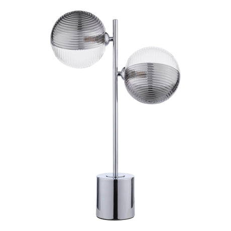 £11300 GBPUnit price /UnavailableIn stock (100 units)Spiral 2 Light Table Lamp Polished Chrome With Smoked/Clear Ribbed Glass