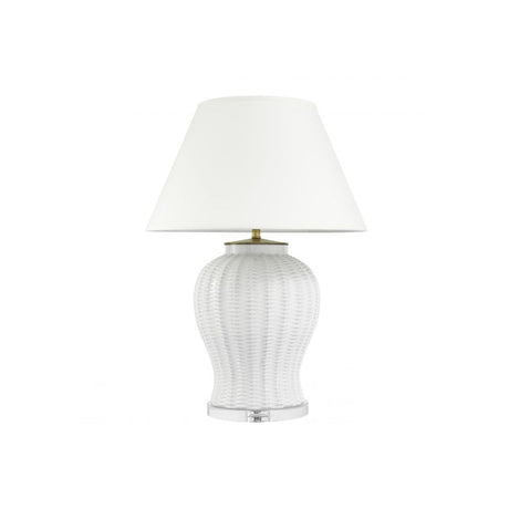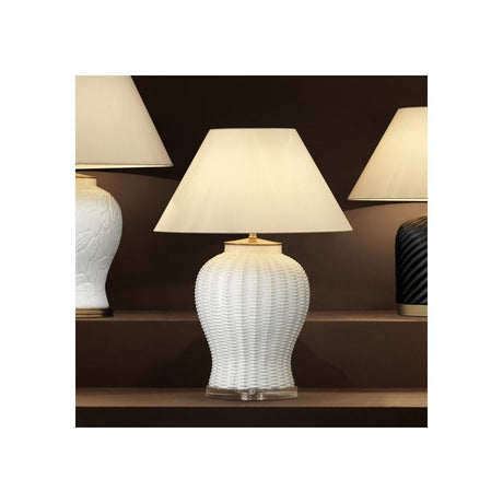 £1,91771 GBPUnit price /UnavailableIn stock (24 units)Crackled White Ceramic Table Lamp with Wicker Basket Design and Crystal Glass Base