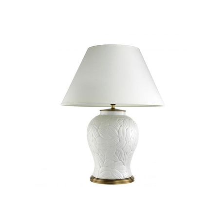£1,13918 GBPUnit price /UnavailableIn stock (24 units)Ceramic Leaf Relief Table Lamp - White with Antique Brass Accents
