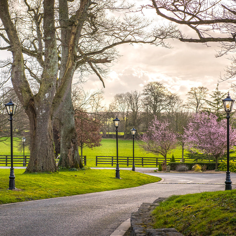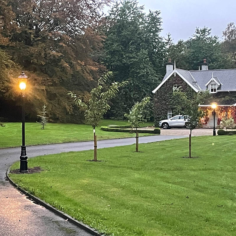Victorian traditional cast iron lamp post This iconic outdoor light is ideal for driveways or larger open spaces. It has an excellent lighting spread and can be found in many manor houses around Ireland which includes; Lyrath Estate, Co. Kilkenny.