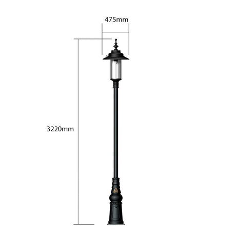 Classic railway style lamp post in cast iron and steel 2.43m (H317)