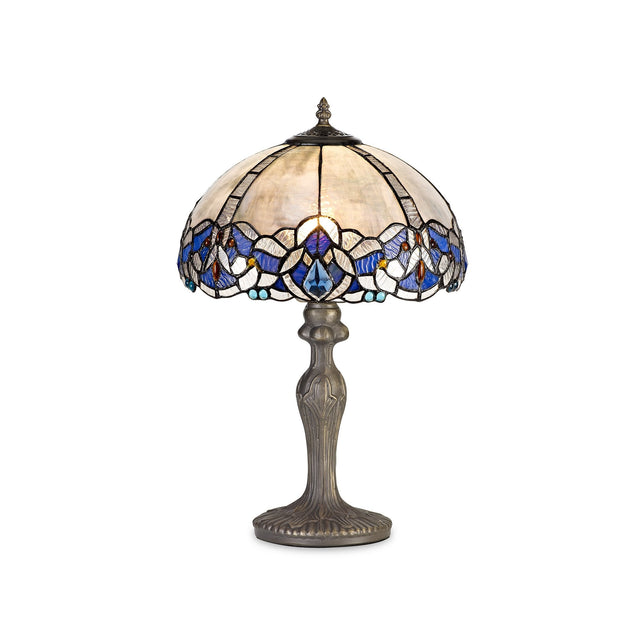Elegant Curved Table Lamp with Tiffany Blue Shade and Antique Brass Finish