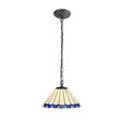 Elegant Tiffany Style Pendant with Aged Brass and Crystal Accent, Blue/Cream Shade