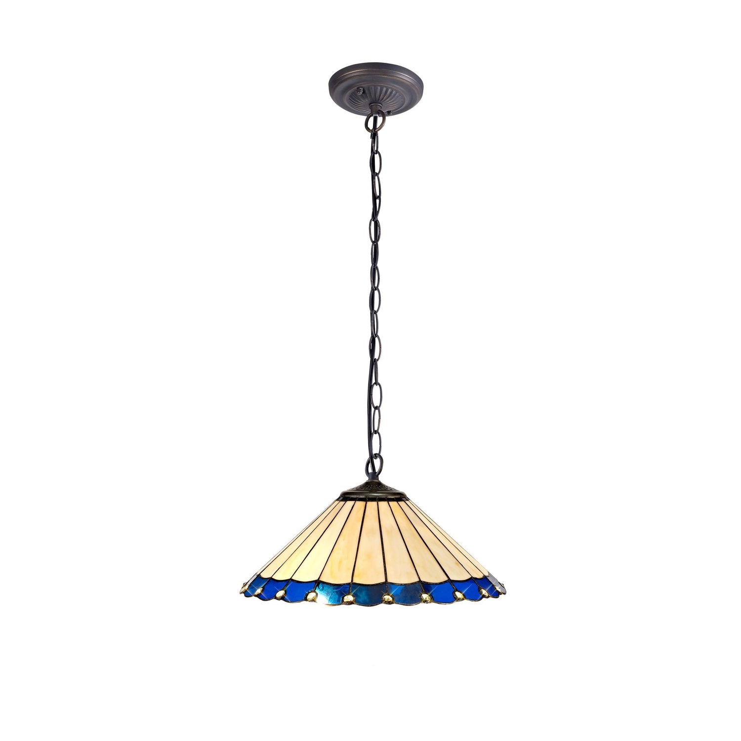 Elegant Tiffany Style Downlight Pendant with Blue and Aged Brass Finish