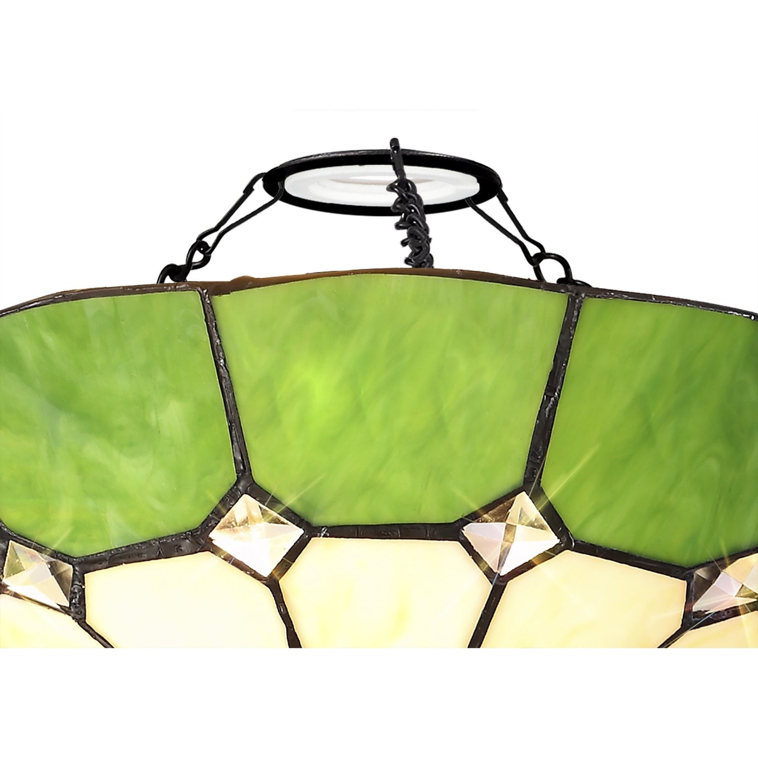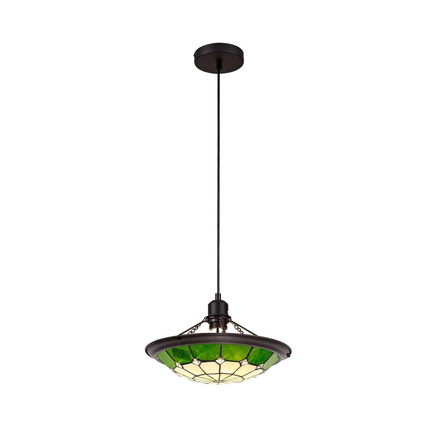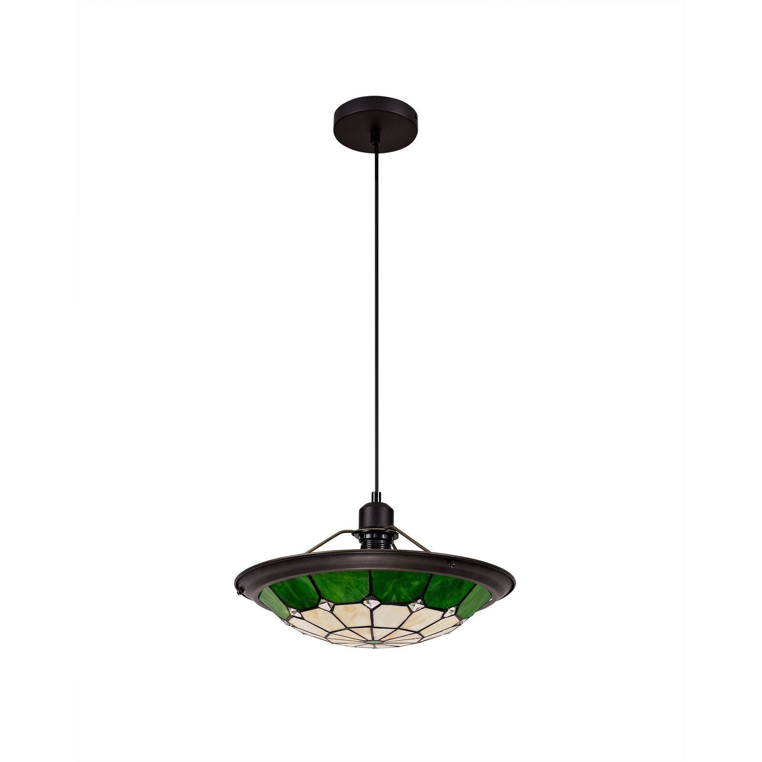Elegant 1-Light Pendant with 35cm Tiffany Shade in Cream, Green & Antique Brass Finish