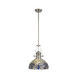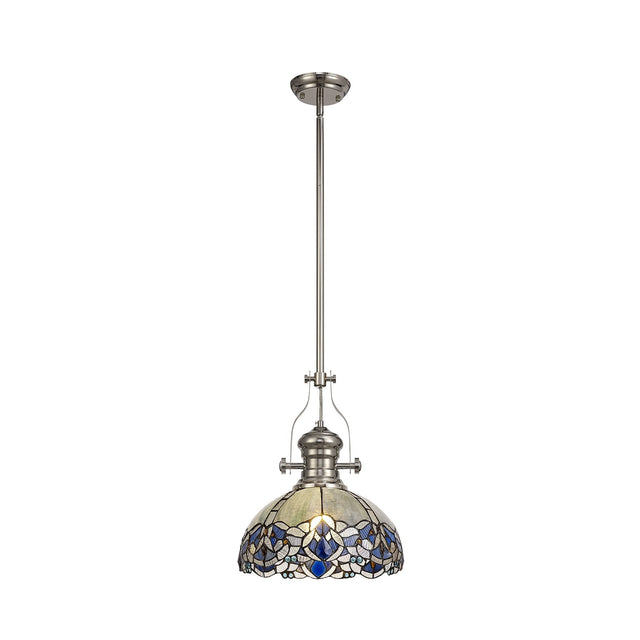 Elegant Tiffany-inspired Blue Pendant Light with Polished Nickel Finish and Crystal Accents