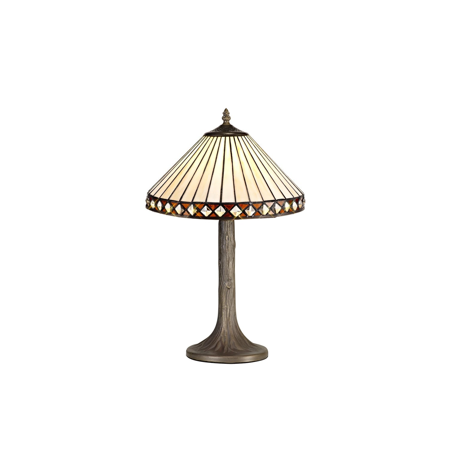 Elegant Amber & Cream Tiffany Table Lamp with Crystal Accents and Antique Brass Finish