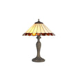 Elegant Dual-Light Curved Table Lamp with 40cm Tiffany Shade in Amber and Antique Brass Finish is backordered and will ship as soon as it is back in stock.