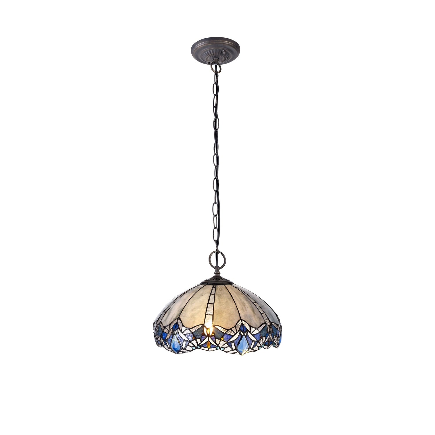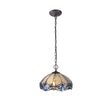 Tiffany Style Pendant with Dual Downlight and Antique Brass Finish, 40cm, Blue/Clear Crystal