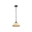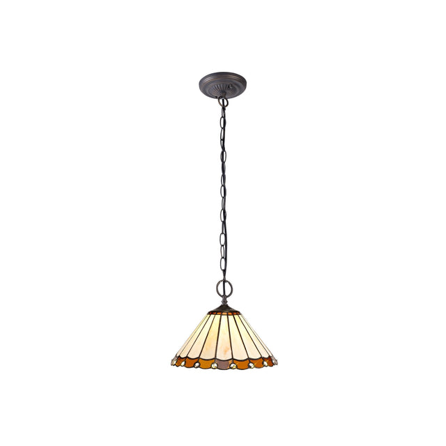 Elegant Two-Light Pendant with 30cm Tiffany Shade in Amber and Cream, Aged Antique Brass Finish