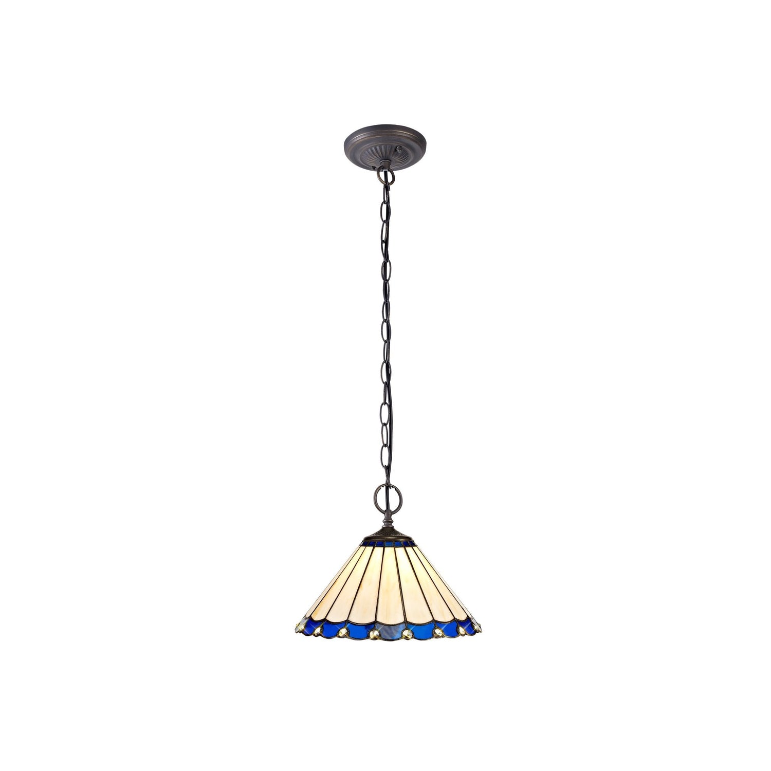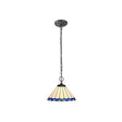 Vintage Two-Light Pendant with Tiffany-Style Blue/Cream Shade and Antique Brass Finish